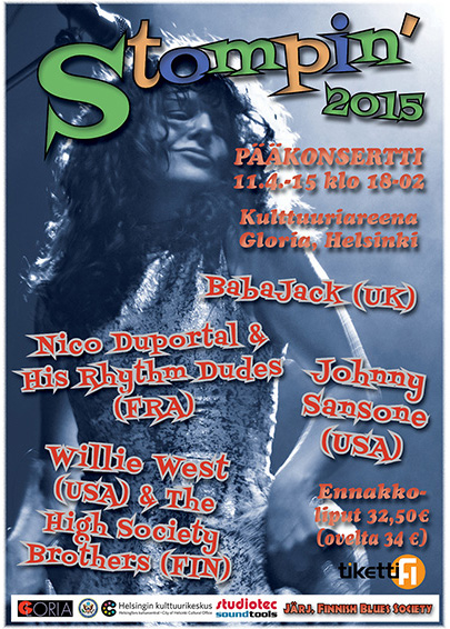 Stompin' 2015 -pääkonsertti, Gloria, Helsinki 11.4.: BabaJack (UK), Willie West (USA) & The High Society Brothers, Nico Duportal & His Rhythm Dudes (FRA), Johnny Sansone (USA)