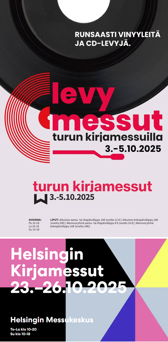 Samoin toimitaan Helsingin Kirjamessuilla Messukeskuksessa (Messuaukio 1) 23.-26. lokakuuta.