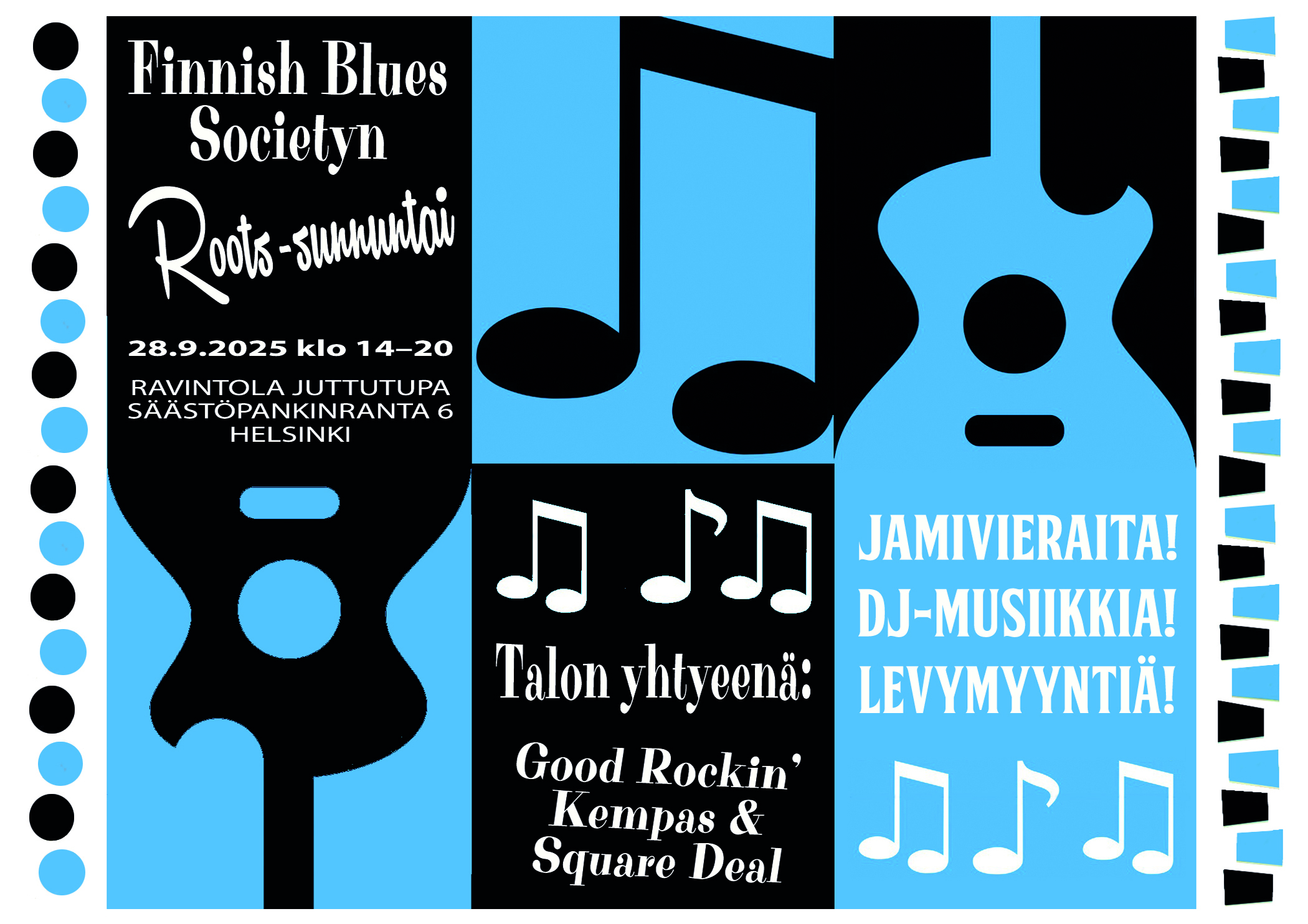 Finnish Blues Societyn ja Blues Newsin perinteiset sunnuntaijamit Helsingin Juttutuvassa ovat täällä taas! Juttutupa (Säästöpankinranta 6) vallataan näissä merkeissä sunnuntaina 28. syyskuuta klo 14-20.