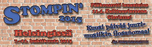 Järjestyksessään viides Stompin'-juurimusiikkifestivaali ajoittuu pääsiäisen jälkeiselle viikolle 7.-12.4.2015. Monista erilaisista tapahtumaosioista koostuvan kaupunkitapahtuman pääkonsertti järjestetään tällä kertaa Helsingin Gloriassa lauantaina 11. huhtikuuta. Stompin'-ohjelman sisällöstä tiedotetaan tarkemmin lähiaikoina.