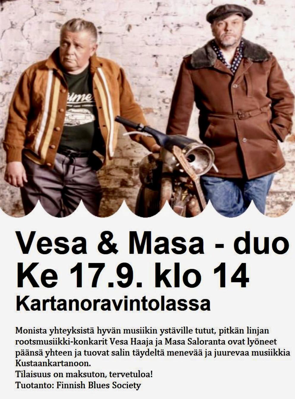 Vesa & Masa FBS ry:n päivätilaisuudessa Kustaankartanon seniorikeskuksessa 17.9.!